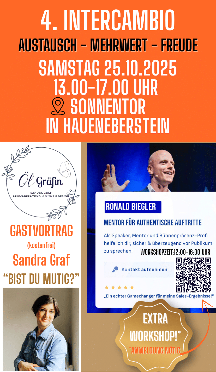 🎟 Workshop: Zeig dich! Mit Stimme, Haltung und Wirkung überzeugen Du bist selbständig und möchtest souveräner, überzeugender und authentischer auftreten?Dann ist dieser Workshop genau das Richtige für dich! In vier […]